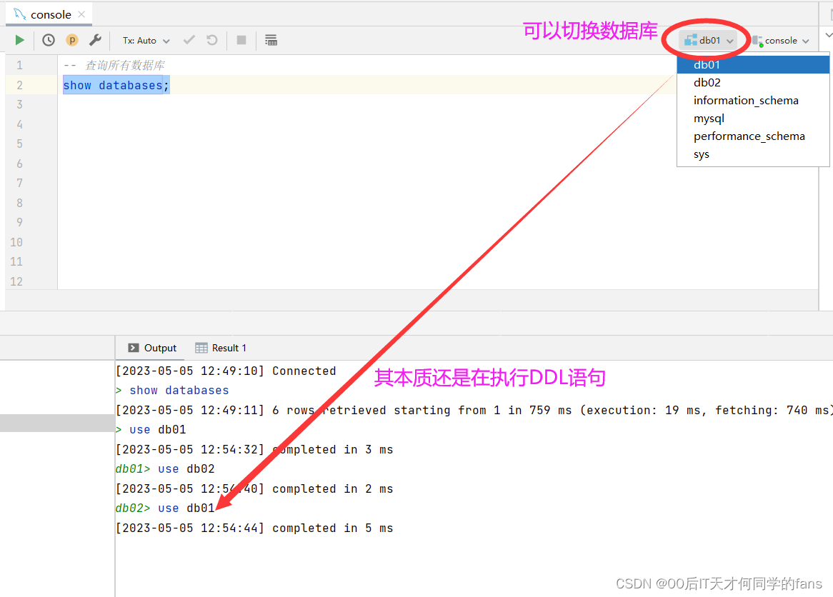 - 其实工具底层也是通过DDL语句操作的数据库,只不过这些SQL语句是图形化界面工具帮我们自动完成的。