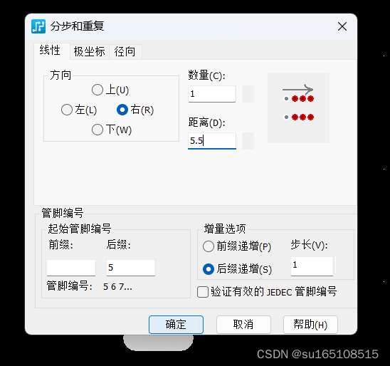 另外一排的焊盘间距为 1.6+3.98 = 5.58,我们选择5.5,差距不用太大即可。