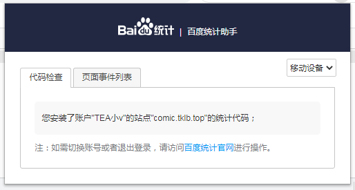 想了想还是决定将电脑端的页面也计入统计范畴,直接在template文件夹下的模板文件头添加即可,最好是有全局模板文件,如类似base.html等,这样就只需要在header标签内添加一次即可。另一种方式就是将js添加到外部js中,注意要去掉script标签: